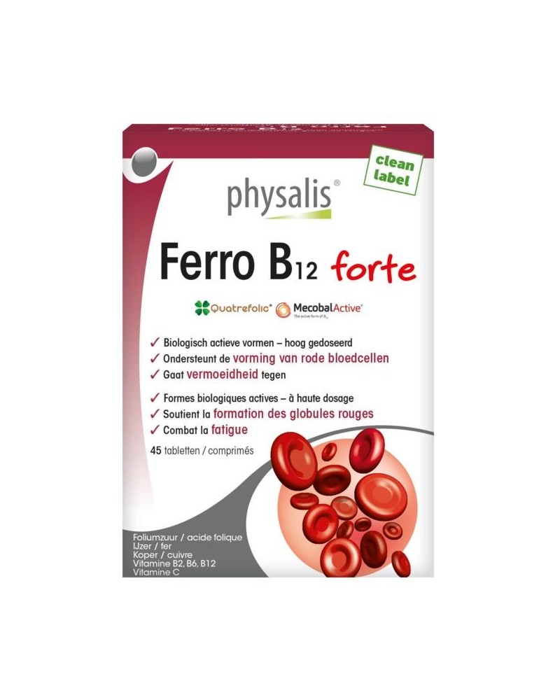Physalis Ferro B12 forte is een compleet ijzercomplex met actieve B-vitamines