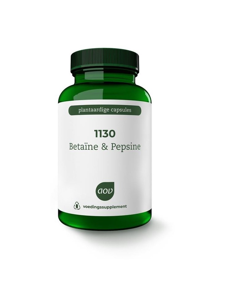 Betaïne HCl, pepsine, hydroxypropylmethyl cellulose (vegacaps), vulstof (microkristallijne cellulose), antioxidant (ascorbyl palmitaat)