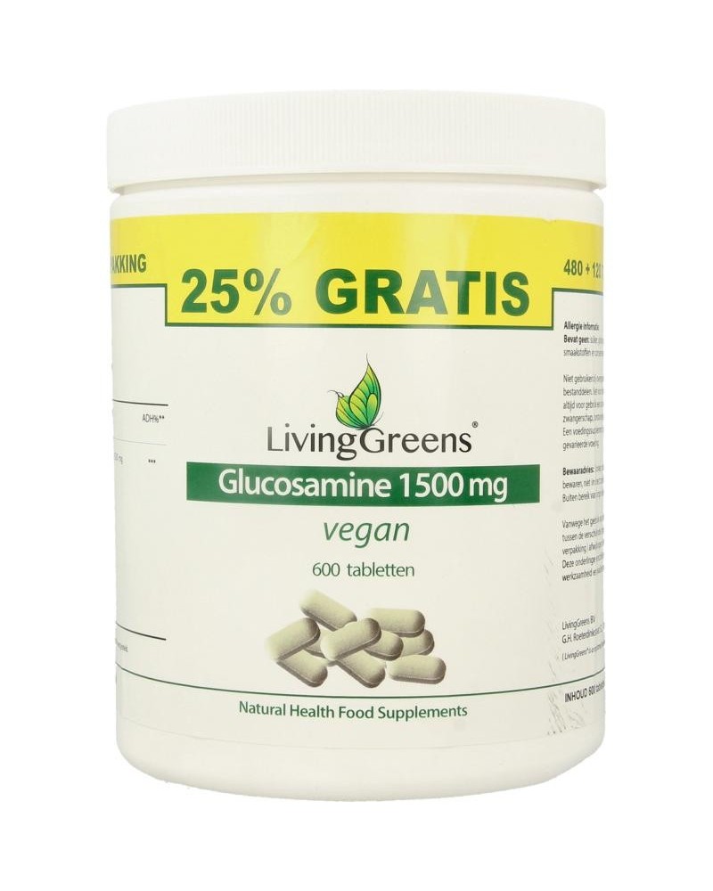 Glucosamine Sulfaat 2KCL, vulstof: microkristallijne cellulose, hulpstoffen: sodium carboxymethylcellulose, antiklontermiddel: magnesium stearaat, coating: HPMC.