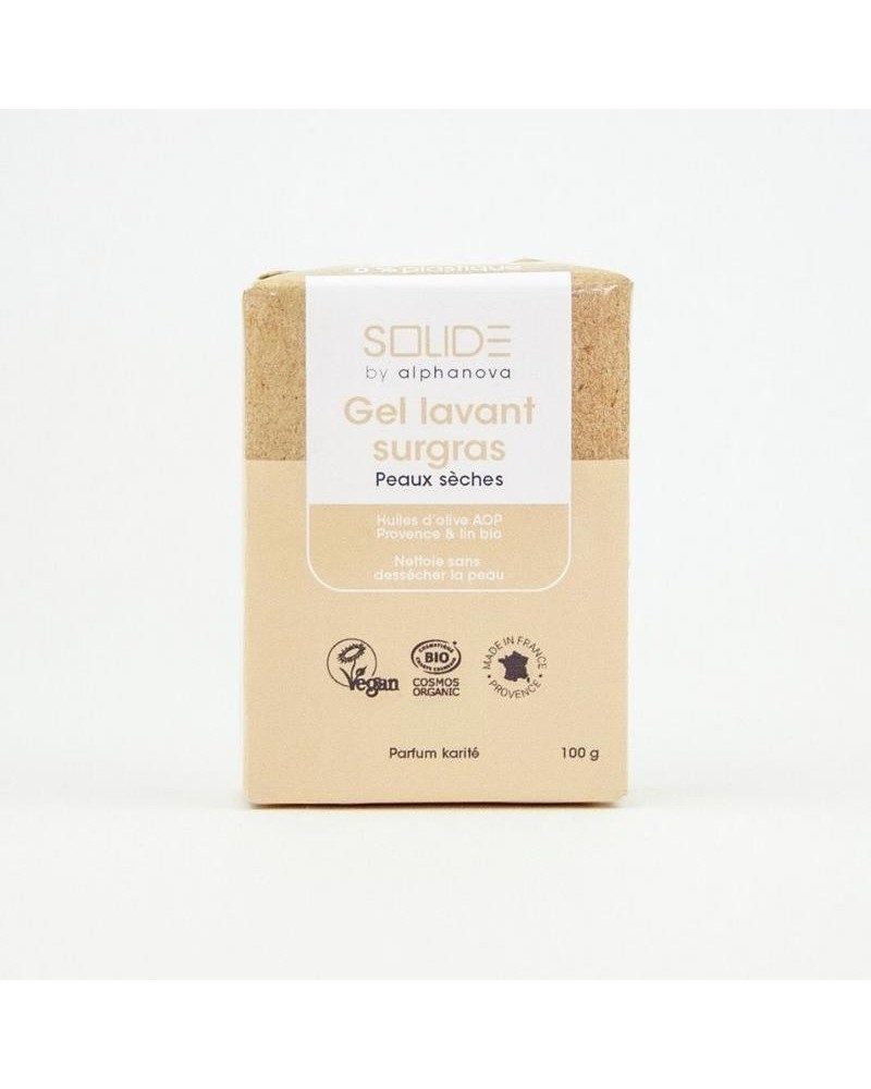 Ontdek de ALPHANOVA SOLIDE Solid Cleansing Gel, speciaal ontwikkeld voor de droge huid. Deze natuurlijke en vegan formule is verrijkt met Olijfolie PDO Provence en biologisch vlas, en biedt een milde reiniging zonder de huid uit te drogen. Geniet van een royaal en smeuïg schuim met een subtiele geur van sheaboter, terwijl je huid zacht en soepel blijft. Deze reinigingsgel is vrij van palmolie en sulfaten, en is verpakt in een ecologisch doosje van gerecycled karton. Ideaal voor wie waarde hecht aan duurzaamheid en natuurlijke verzorging.