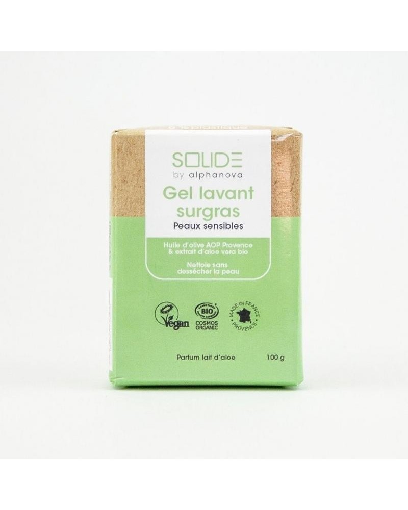Ontdek de ALPHANOVA SOLIDE Solid Cleansing Gel, speciaal ontwikkeld voor de gevoelige huid. Deze reinigingsgel in vaste vorm is verrijkt met aloë vera en biedt een zachte, maar effectieve reiniging. Het product is ontworpen om de natuurlijke hydratatie van je huid te behouden, terwijl het een romig schuim creëert dat de huid omhult. Met een focus op duurzaamheid, wordt deze gel geleverd in een ecologische doos van gerecycled karton.
