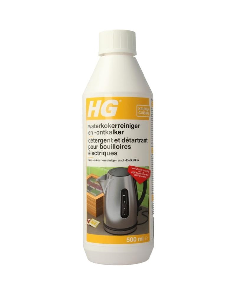 Waterkoker ontkalken? HG waterkokerreiniger en -ontkalker is ontwikkeld om kalkaanslag en vervuiling door ketelsteen gemakkelijk en snel, maar veilig te verwijderen. Deze waterkoker ontkalker is reukloos en laat geen smaak achter. Regelmatig reinigen en ontkalken zorgt voor verlenging van de levensduur van de waterkoker.