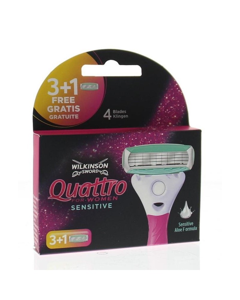 Wilkinson Sword Quattro for Women Sensitive vrouwen navulsmesjes - 3 stuks + 1 gratis