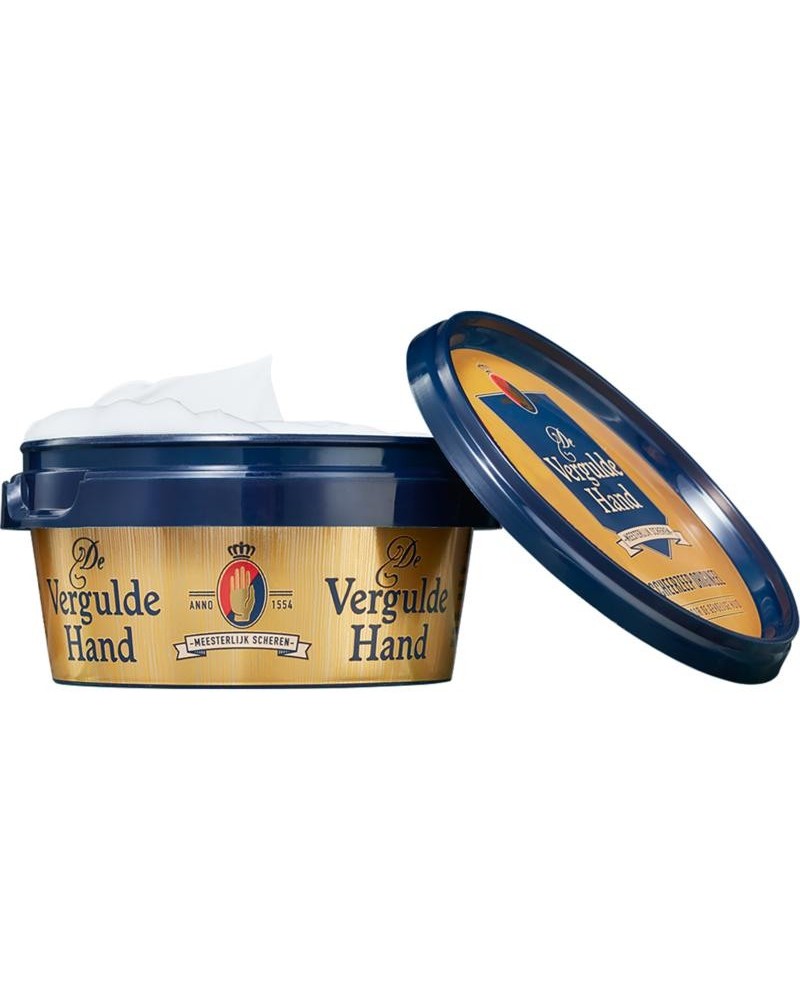 Al jaren dé nummer één op de markt voor authentieke natscheerders. De Vergulde Hand biedt een heerlijke scheerzeep die rijkelijk schuimt en ervoor zorgt dat het mes gemakkelijk over de huid kan glijden. Door de huid in te zepen met De Vergulde Hand zeep en scheerkwast worden huid en baardharen gestimuleerd. Dit zorgt voor betere doorbloeding, de baardharen gaan recht op staan waardoor ze eenvoudiger geschoren kunnen worden. Dit zorgt voor een zichtbaar gladder scheerresultaat.
