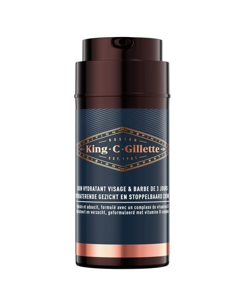 De King C. Gillette gezicht en stoppelbaard moisturizer biedt langdurige hydratatie en verzorging om de natuurlijke vochtbarrière van de huid in stand te houden en ruwe, stekelige stoppels te verzachten. De King C. Gillette gezicht en stoppelbaard moisturizer heeft een kenmerkende geur met noten van bergamot, geranium en cederhout.