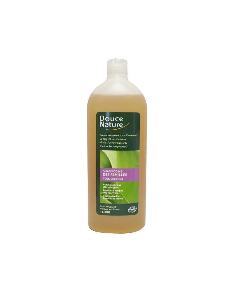 Douce Nature familie shampoo met groene thee herstelt de natuurlijke glans van het haar. Zachte shampoo zonder sulfaten en cocamidopropyl betaïne. Gegarandeerd zonder palmolie en dierlijke bestanddelen. Zeepvrij, natuurlijke pH-waarde en dermatologisch getest.