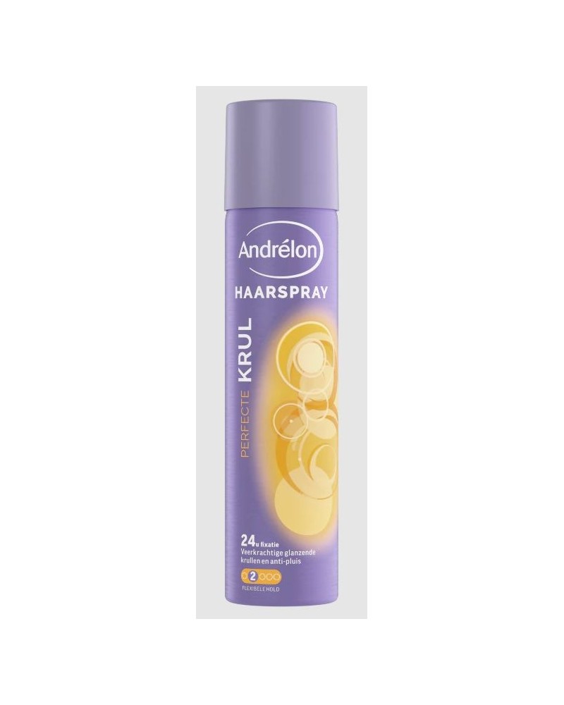 De Andrélon Haarspray Perfecte Krul; geeft je haar 24u fixatie, veerkrachtige glanzende krullen en anti-pluis.