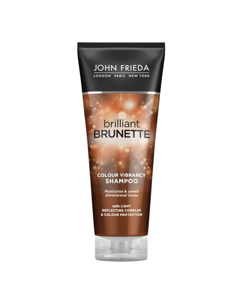 Onthul multidimensionele tonen terwijl je je haar reinigt. Onze Brilliant Brunette Colour Vibrancy shampoo hydrateert en herstelt droog, natuurlijk en gekleurd bruin haar. De formule is samengesteld met lichtreflecterend complex en kleurbescherming. De shampoo voegt geen kleur toe.