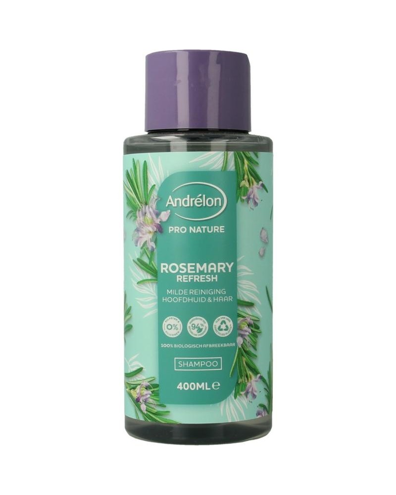 De Andrélon Pro Nature Rosemary Refresh Shampoo is verrijkt met rozemarijn en reinigt je haar en hoofdhuid op milde wijze voor een langer fris gevoel.