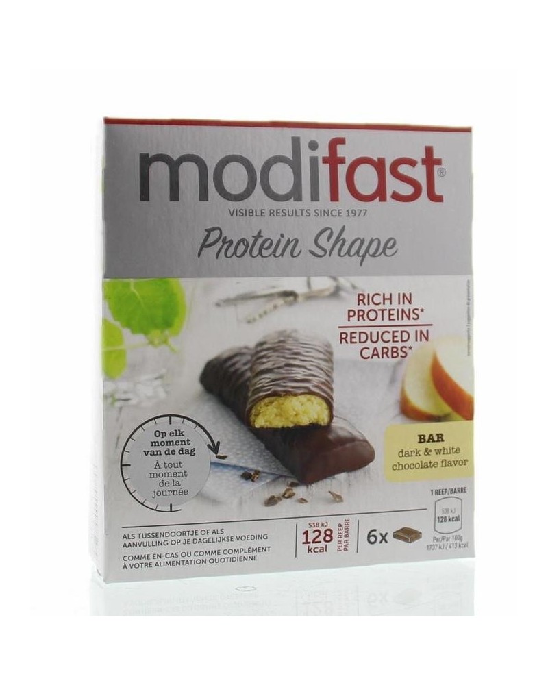 Deze Modifast snack reep pure en witte chocoladesmaak is een tussendoortje met een heerlijke witte chocoladesmaak en een laagje lekkere, pure chocolade eromheen. Dankzij de handige stukverpakking zijn de repen gemakkelijk mee te nemen, zodat u ze altijd en overal bij de hand heeft.