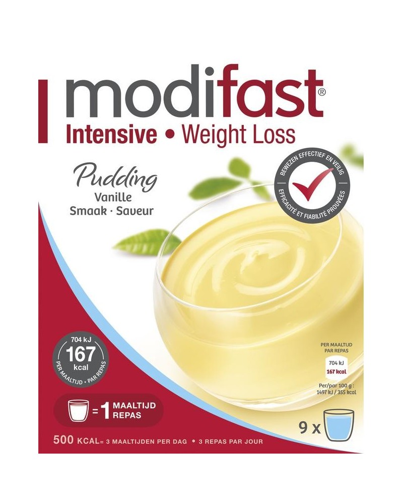 200 ml koud water + 1 zakje Modifast Intensive Pudding. Krachtig roeren met een klopper of schudden met een schudbeker, 3 minuten laten rusten.