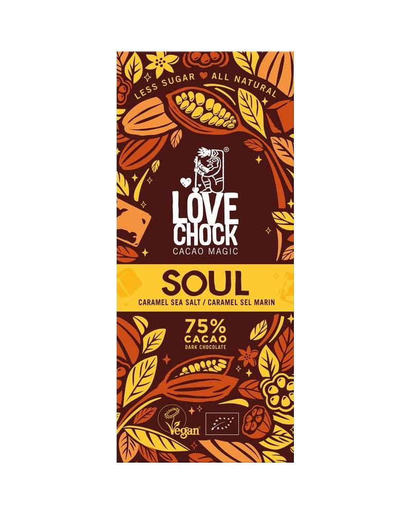Ontdek de betoverende magie van cacao met Soul, onze pure chocolade met natuurlijke karamel smaak uit moerbeien en zeezout. Gemaakt met de beste natuurlijke ingrediënten en van nature laag in suiker. Lovechock Soul is niet alleen 100% vegan en biologisch, maar wordt ook verpakt in thuis composteerbare folie. Geniet zorgeloos van de magie van cacao!