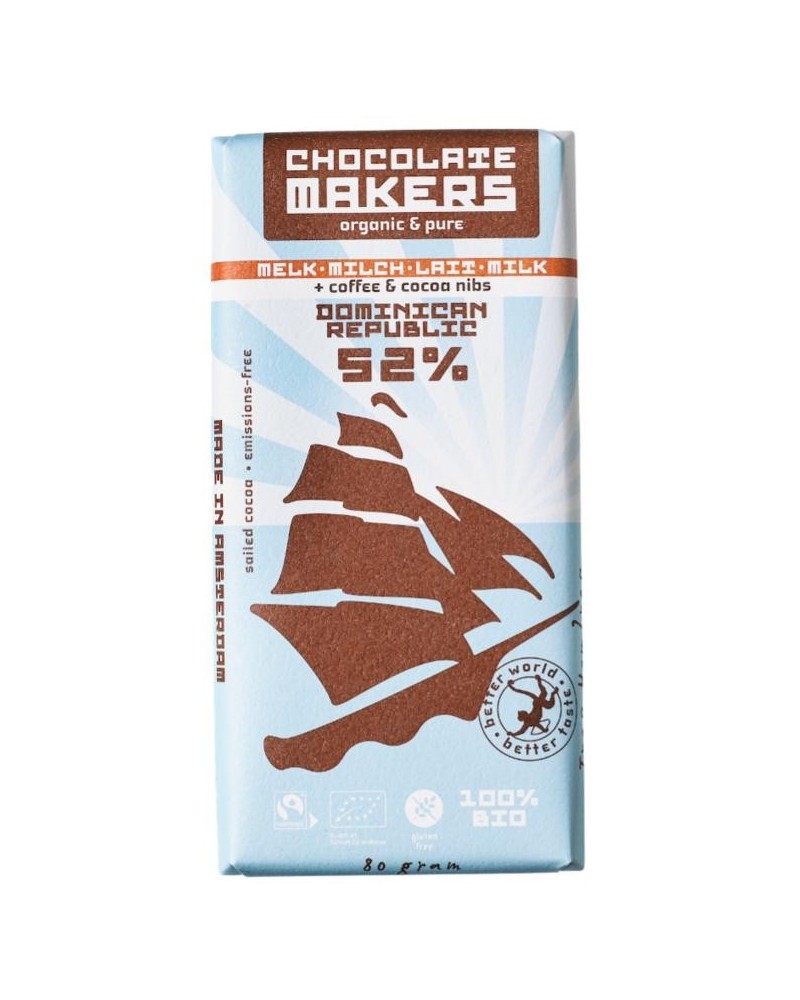 Chocolatemakers Reep Tres Hombres 52% melk met cacaonibs & koffie fairtrade bio