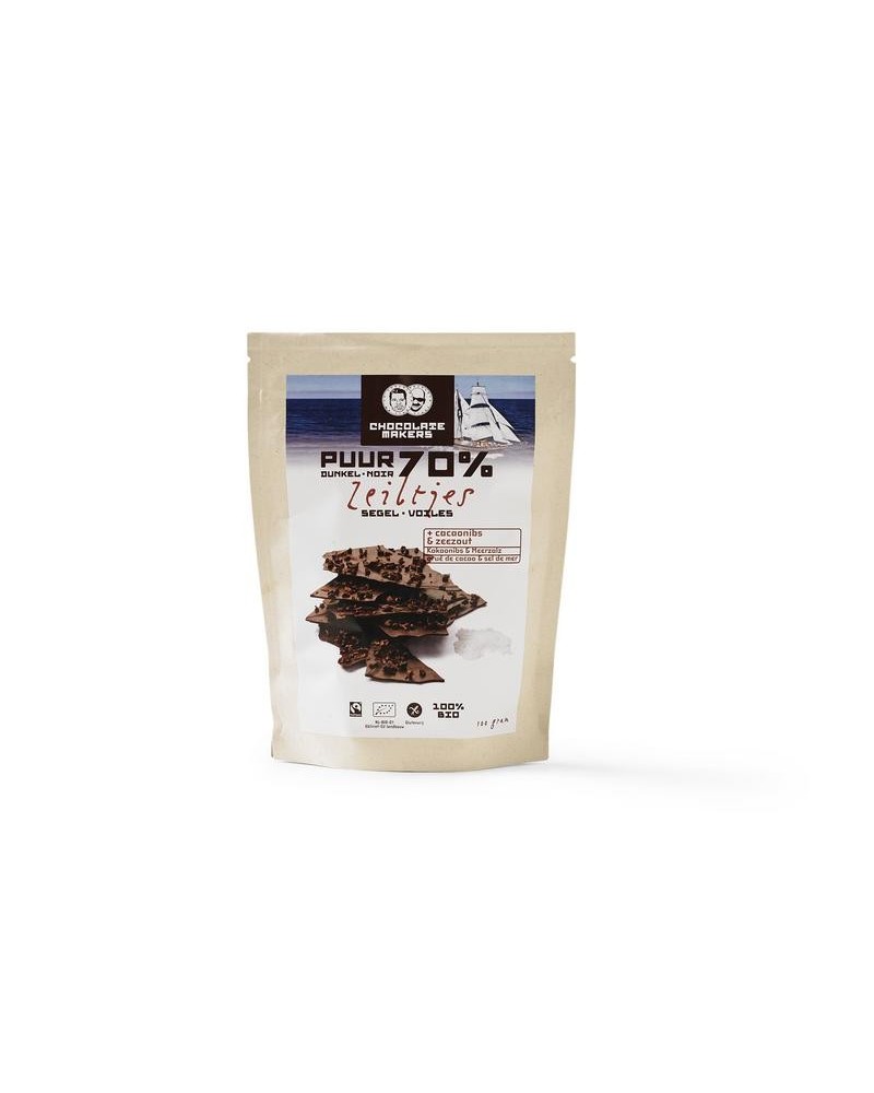 Chocolatemakers Zeiltjes puur 70% met cacaonibs & zeezout bio