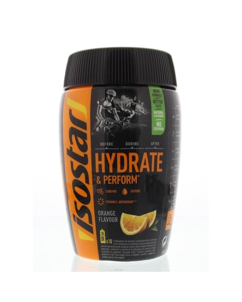De Hydrate & Perform sport poeder van Isostar combineert koolhydraten en elektrolyten om te voldoen aan de behoeften van de sporter tijdens de inspanning. De isotone drank zorgt daarnaast voor een goede hydratatie.