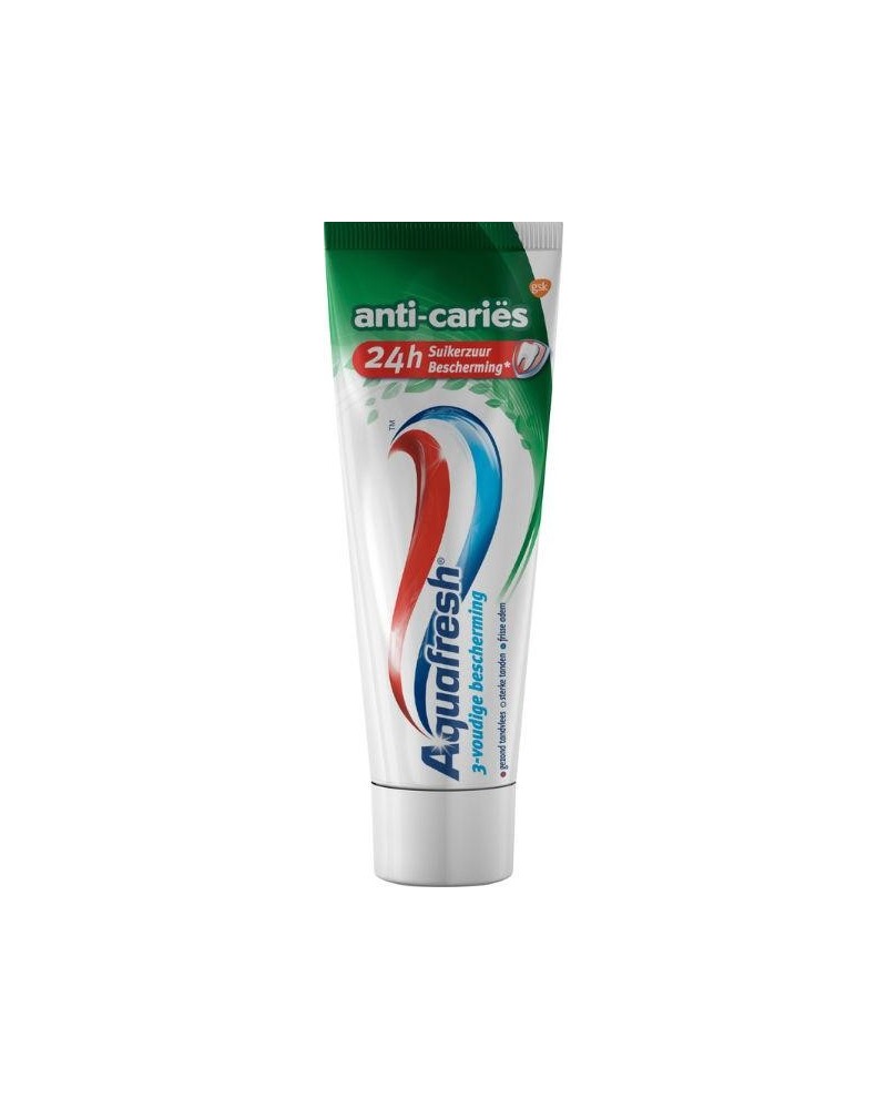 (1) Fluoride wordt opgenomen door de tanden en helpt ze te versterken en beschermen. (2) de Aquafresh Anti-Cariës tandpasta vormt een beschermende laag om je tanden heen (3) en helpt zo de tanden tegen suikerzuuraanvallen te beschermen. Houd je mond gezond met de vertrouwde 3-voudige bescherming van Aquafresh tanpasta: gezond tandvlees, sterke tanden, frisse adem.