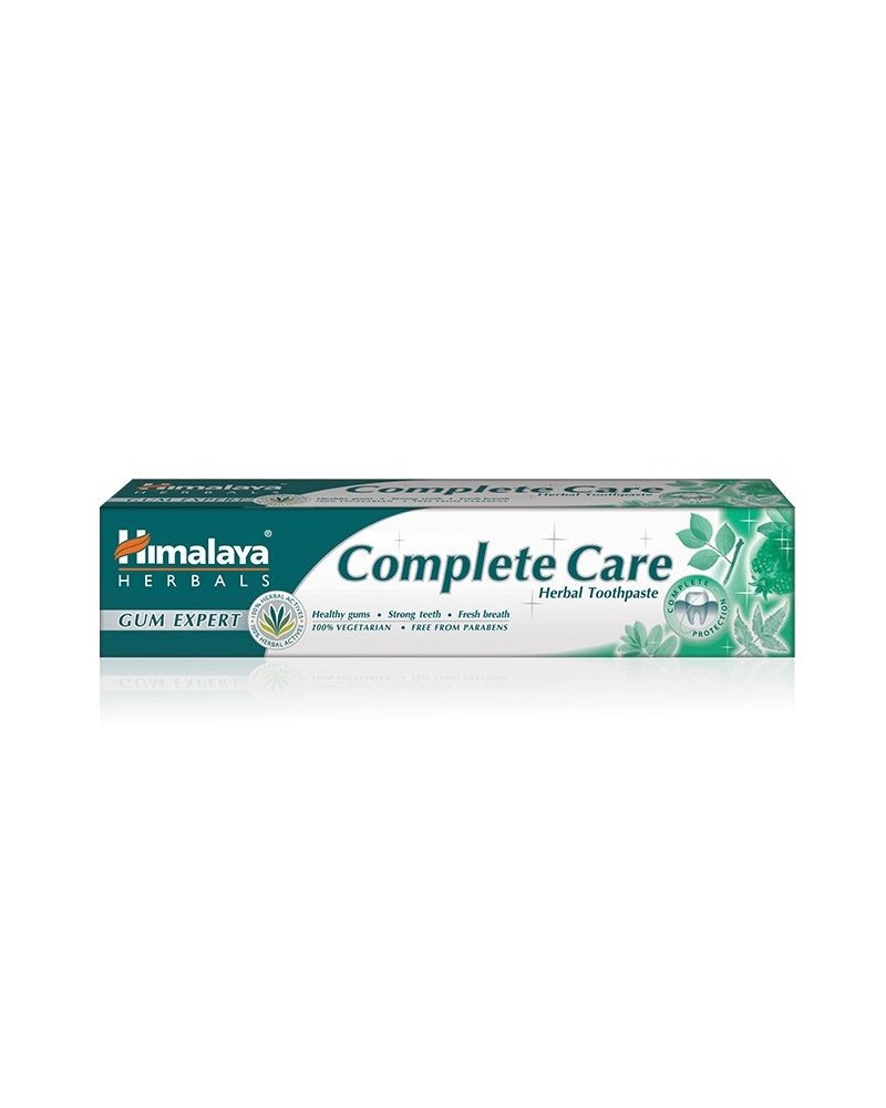 Complete Care kruidentandpasta is een geavanceerde formule die 12 uur lang bescherming biedt tegen schadelijke ziektekiemen en verwijdert vlekken en plakvorming. Complete Care kruidentandpasta bevat calcium fluoride (500 ppm). De Himalaya Herbals Gum Expert lijn bevat tandpasta’s met Miswak en natuurlijke reinigers die het tandvlees beschermen en gezond houden. Gezond tandvlees zorgt voor sterke tanden en goede mondhygiëne.