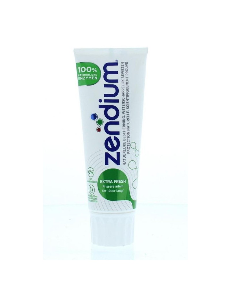 Zendium tandpasta bevat 100% natuurlijke enzymen die de goede bacteriën in de mond bevorderen en daarmee de mond op natuurlijke wijze beschermt.