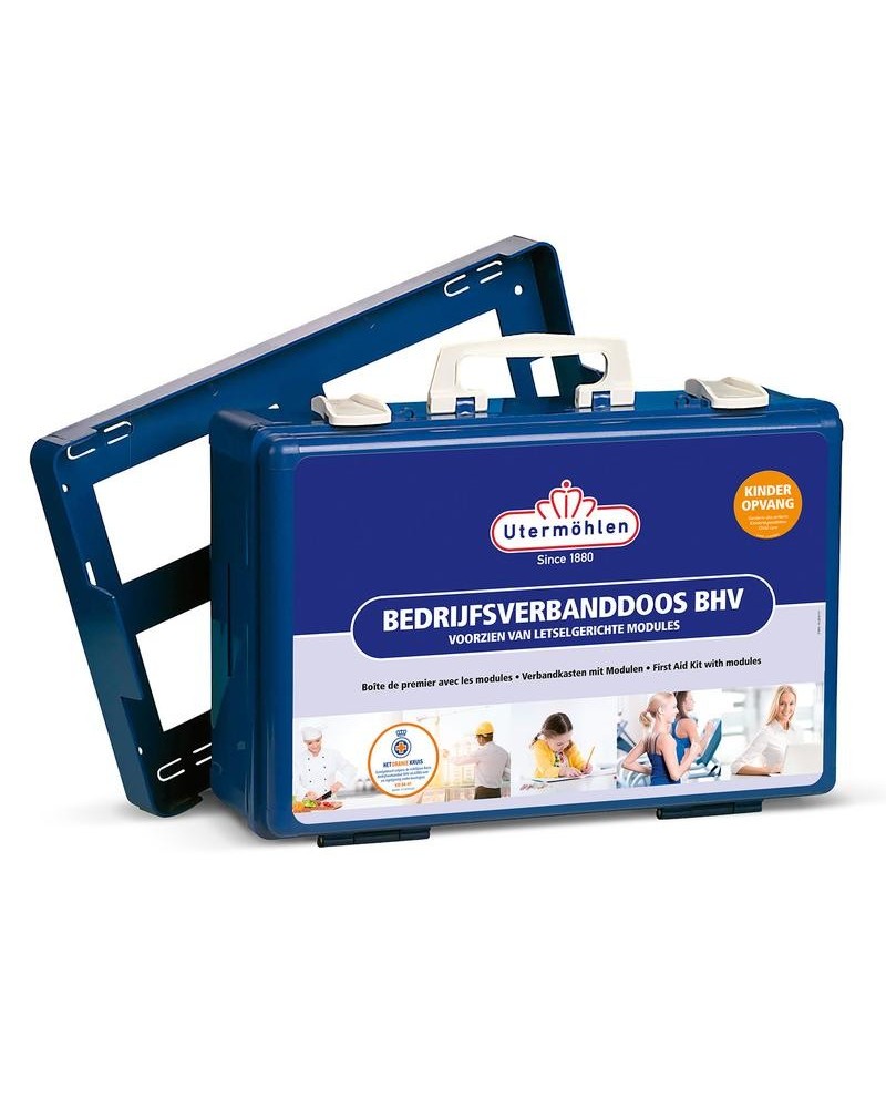 De HeltiQ BHV Verbanddoos Kind modulair bestaat uit 6 losse modules. Iedere module bevat producten voor een bepaald type verwonding/letsel. Afhankelijk van de verwonding/het letsel kan een bepaalde module worden gebruikt. De inhoud van module 6 kinderopvang maakt de bedrijfsverbanddoos branchespecifiek, waardoor deze bedrijfsverbanddoos geschikt is voor bedrijfshulpverlening in de kinderopvang.