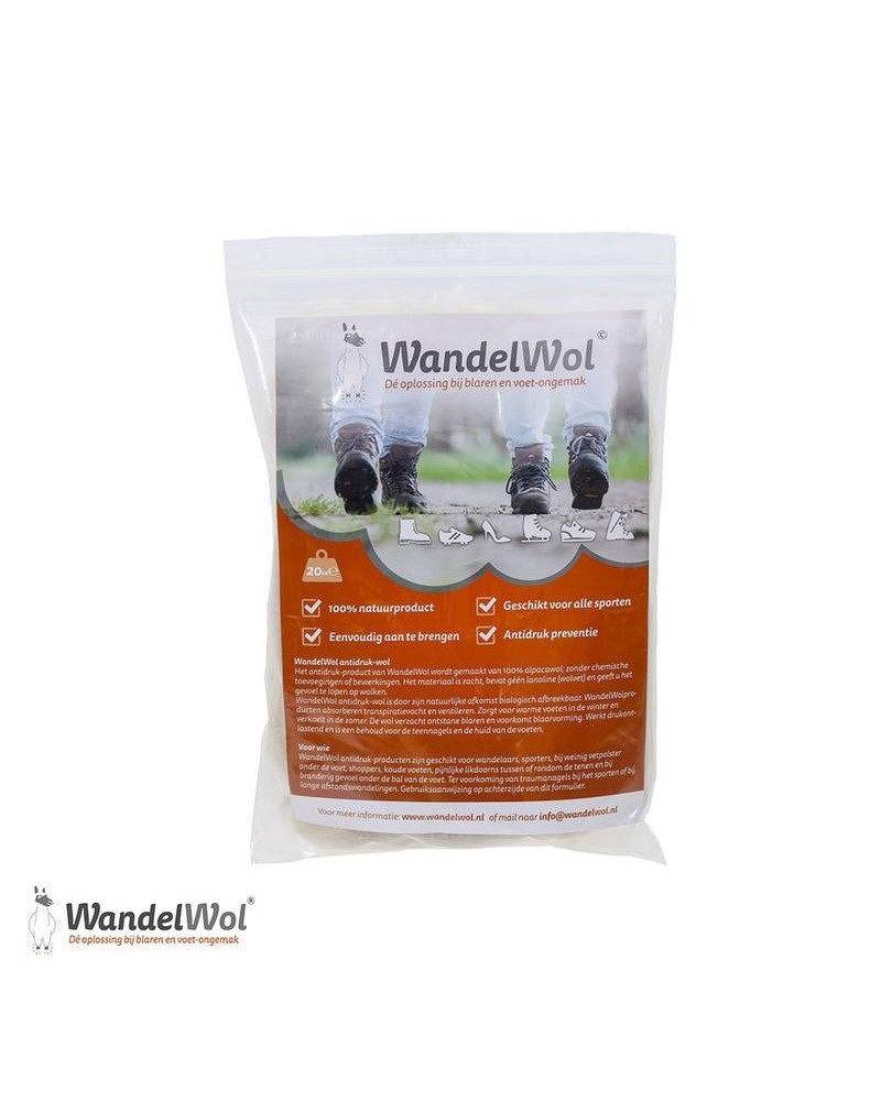 WandelWol antidruk-wol is door zijn natuurlijke afkomst biologisch afbreekbaar. WandelWol antidruk-producten absorberen transpiratievocht en ventileren. Zorgt voor warme voeten in de winter en verkoelt in de zomer. De antidruk-wol verzacht ontstane blaren en voorkomt blaarvorming. Werkt druk-ontlastend en is een behoud voor teennagels en voeten. Velen gingen u al voor!