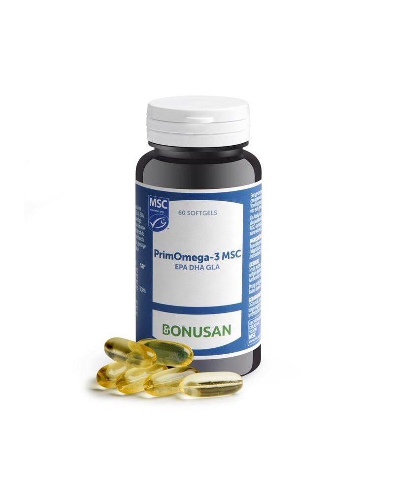 De Bonusan PrimOmega-3 MSC biedt een unieke combinatie van omega-3 vetzuren uit visolie èn het plantaardige omega-6 vetzuur GLA.
