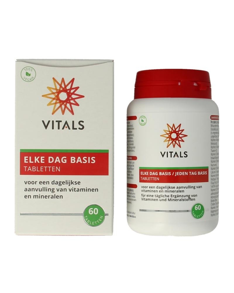 Europese overheidsinstellingen hebben vastgesteld dat het niveau voor een adequate inname van vitamine D uit voeding 15 mcg is. In Nederland zijn ze nog voorzichtig en geven aan dat 10 mcg voldoende is. Maar Vitals gaat ervan uit dat hogere doseringen wenselijk zijn. In Elke Dag Basis zit dan ook een ruime dosering van 20 mcg per tablet. Bovendien is de bron van deze vitamine D3 plantaardig (Vitamin D3V®, en komt niet van schapenwolvet.