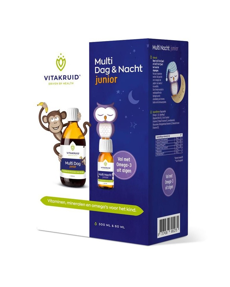 Voor uw kind wilt u natuurlijk het allerbeste. Met die insteek gebruikt Vitakruid in de Multi Dag & Nacht Junior uitsluitend nutriënten met de hoogste biologische beschikbaarheid. Op deze manier ondervindt uw spruit optimaal effect van het brede palet aan nutriënten in deze formule. Bovendien garanderen we u dat de gebruikte vormen binnen dit product een veganistische oorsprong hebben, duurzaam zijn en aan de meest recente veiligheidseisen voldoen. Een supplement voor de toekomst van kind én planeet!