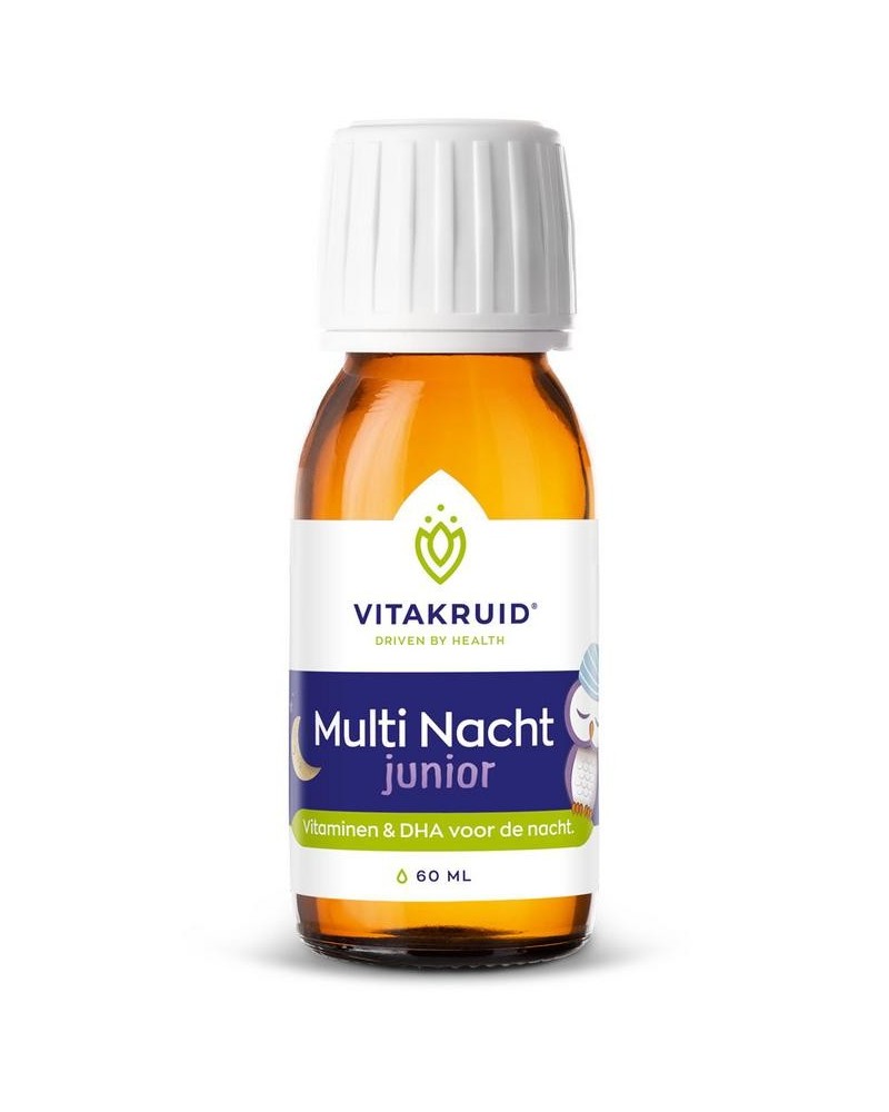 ’s Nachts willen we vooral dat onze spruit ondersteund wordt in zijn psychologische en fysieke gesteldheid. Dit vereist totaal andere nutriënten dan een formule voor ondersteuning van energie, concentratie en coördinatie. Vitakruid is de enige aanbieder van voedingssupplementen die rekening houdt met het bioritme van uw kind. En daarom bevat de Multi Nacht Junior onder andere vitamine D, voor de opbouw van sterke botten en vitamine A, voor het herstellend vermogen van de huid.
