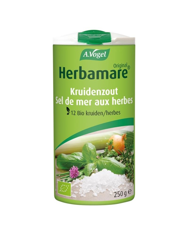 Herbamare Original is een biologisch kruidenzout dat gerechten op smaak brengt of als tafelzout gebruikt kan worden.