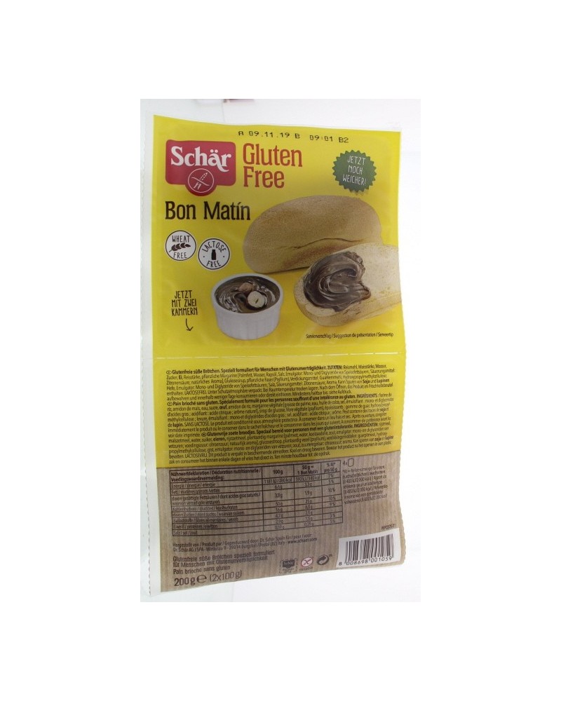 Schär Bon Matin broodjes zijn zoete broodjes: een onweerstaanbare verleiding. Lekker als ontbijt en als tussendoortje. De verpakking bevat 4 broodjes.