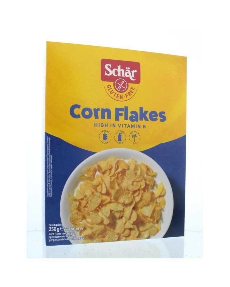 Knapperige glutenvrije cornflakes van Schär met acht belangrijke vitaminen. Lekker als ontbijt met wat (plantaardige) melk of yoghurt!