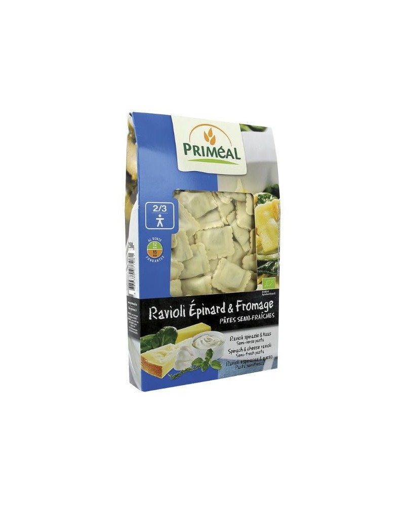 Met deze semi-verse pasta biedt primeal u de kwaliteit van verse pasta en het praktische voordeel van gedroogde pasta! Op elk moment bereidt u in een handomdraai een overheerlijke pastagerecht. Dit assortiment gevulde pasta's wordt zonder eieren en met een rijke vulling bereid. Tijdens het koken zwelt de pasta op waardoor er uit een bakje van 250 gram een gerecht van 450 gram pasta kan bereid worden, wat goed is voor 2 tot 3 personen. De vulling van de ravioli spinazie & kaas bestaat voor de helft uit 3 kazen met karakter, wat dit gerecht een heel eigen smaak geeft.