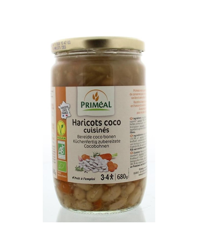 Water, Gerehydrateerde witte bonen* (39,9%), Ui*, Wortels* (6%), Zonnebloemolie*, Zeezout, Knoflook*, Aromatische kruiden*, Zwarte peper*