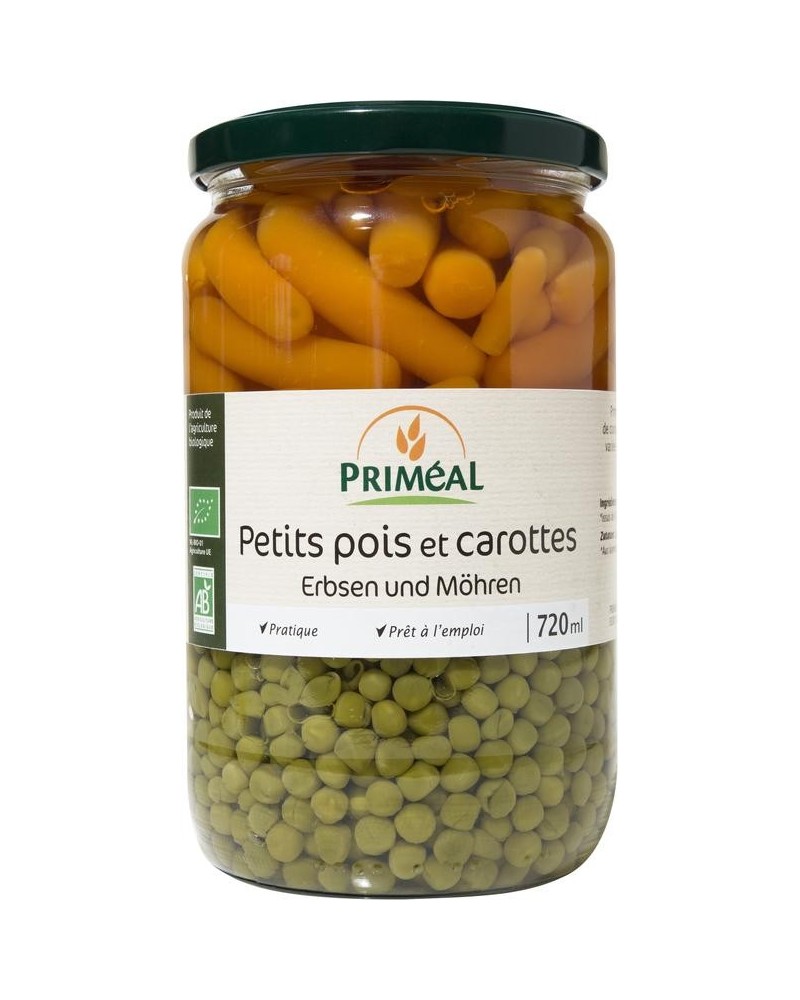 Lekker en klaar voor gebruik: biologische doperwtjes met wortelen.