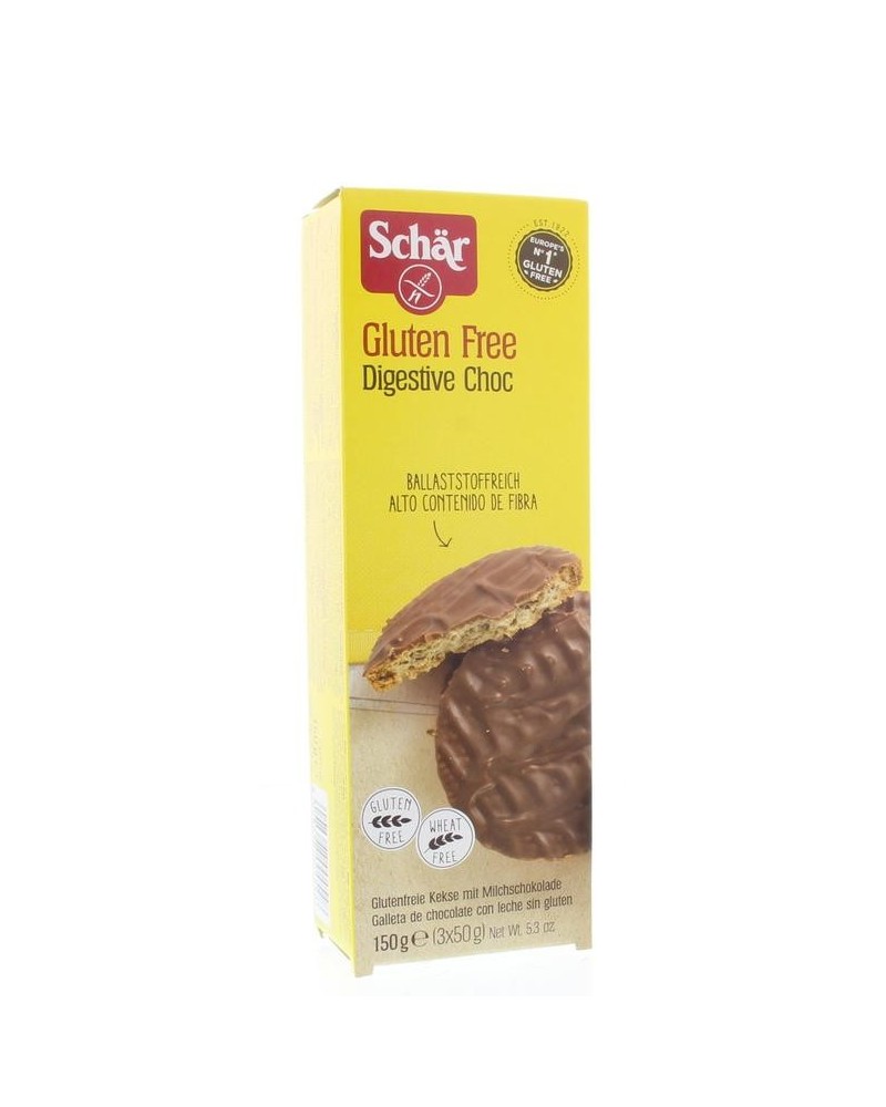 Schär Digestive Choc: glutenvrije biscuits met melkchocolade. Smaakt precies als het originele koekje met gluten. Van dit koekje blijf je eten!