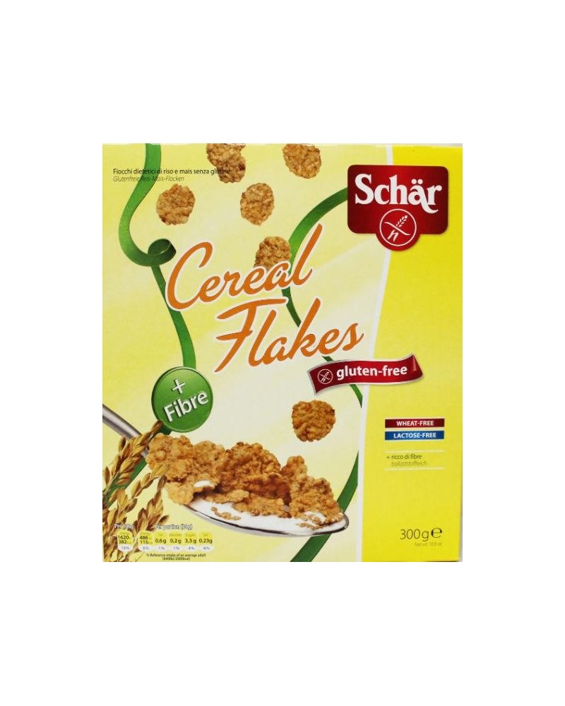 Schär Cereal flakes zijn glutenvrije ontbijtflakes bestaande uit rijst- en maïsvlokken. De flakes zijn verrijkt met vitaminen en ijzer.