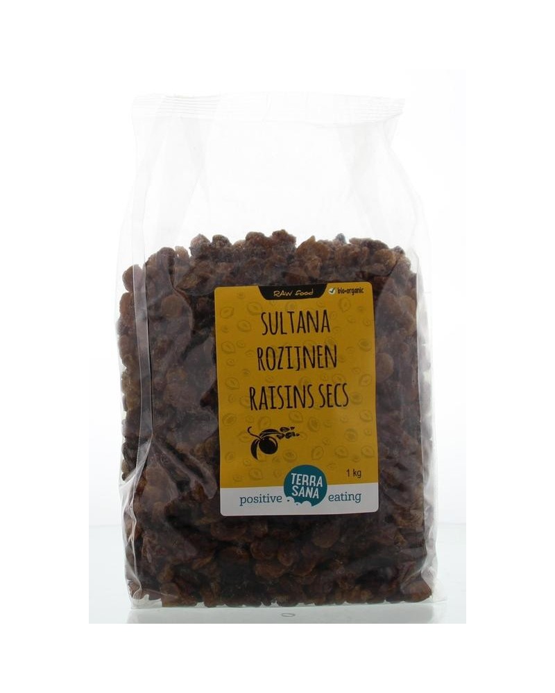 Biologische sultana rozijnen, zongedroogd en ongezwaveld.