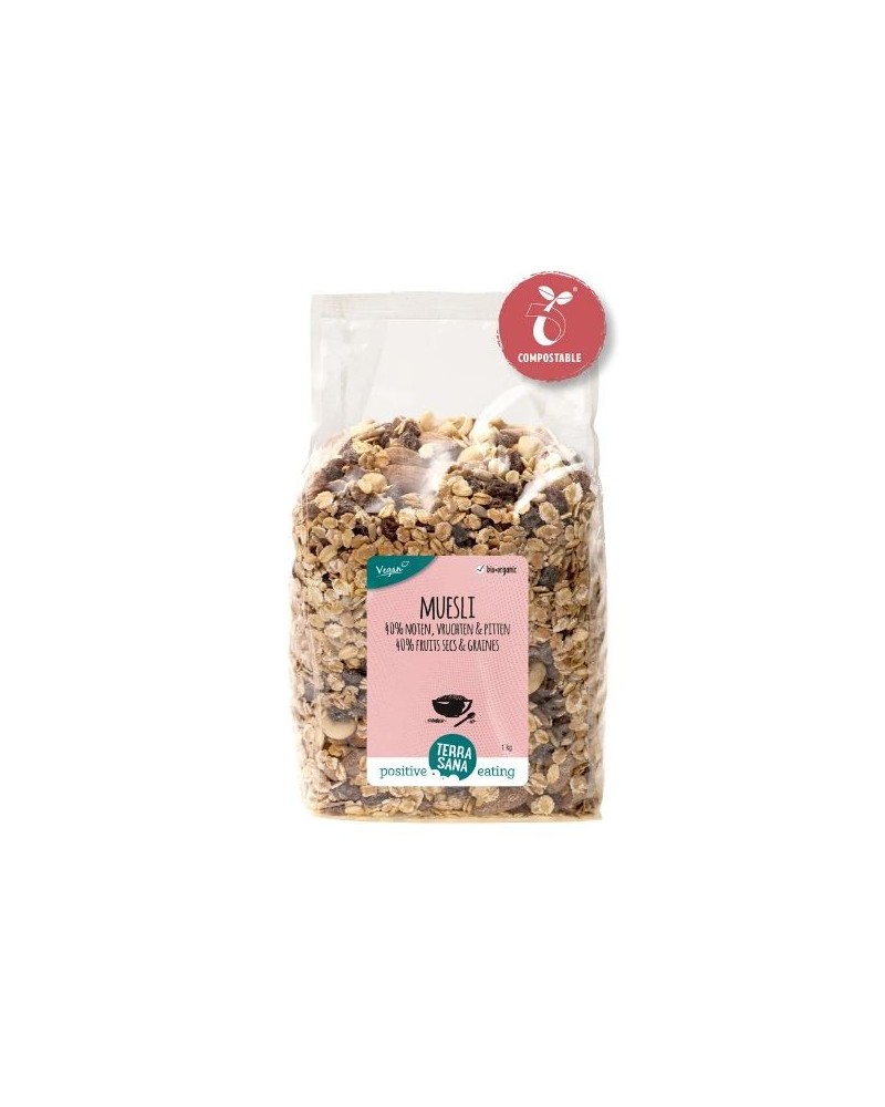 HAVER*-, TARWE*- en GERSTevlokken*, sultana's*, rozijnen*, zonnebloemolie* 0,5%), zonnebloempitten*, HAZELNOTEN bruin*, HAZELNOTEN wit geroosterd*, AMANDELEN bruin*, CASHEWNOTEN*.