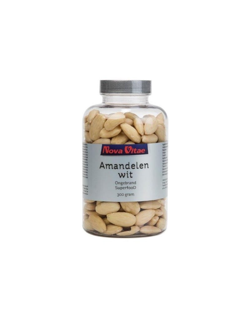 Amandelen zonder vlies bevatten veel vezels, vitamine E en B en zijn rijk aan meerdere mineralen. Namelijk foliumzuur, magnesium, ijzer, zink, calcium, koper, fosfor en kalium. Ook zijn deze amandelen rijk aan antioxidanten en bevatten veel gezonde vetzuren. Deze noten zijn ongeroosterd en ongezouten.