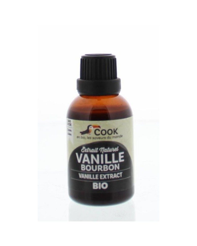 Vloeibaar vanille extract. Het vanille-extract wordt verkregen door hydro-alcoholische koude extractie van biologische vanillestokjes uit madagascar.