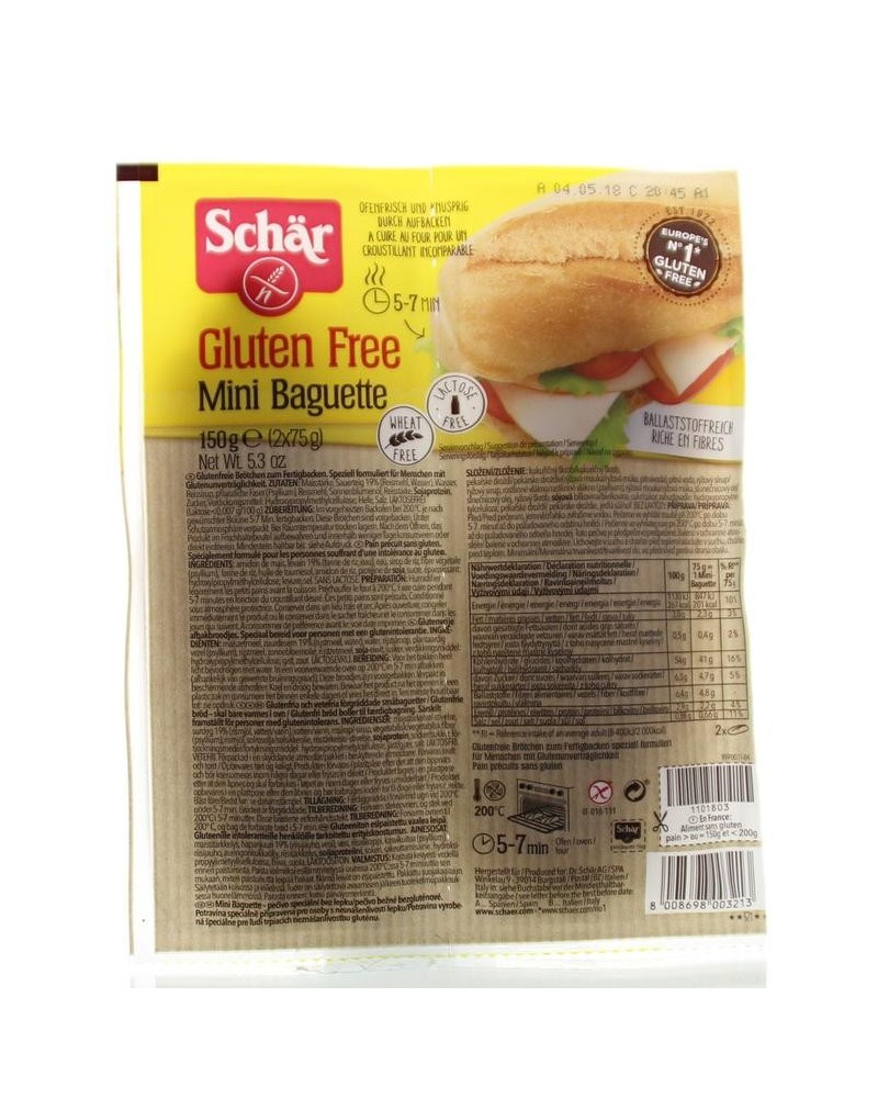 Mini baguettes van Schär. De mini baguettes in de handige deelverpakking bak je in 5 minuten af in de oven. Na afbakken smaakt de mini baguette nog urenlang knapperig vers.