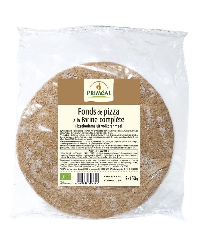 Primeal Pizzabodem uit volkoren meel, 2 stuks à 150 gram