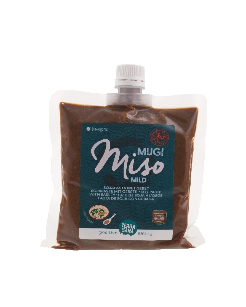 Mugi miso (gepasteuriseerd) is een hartige Japanse smaakmaker die op ambachtelijke wijze wordt gemaakt van gefermenteerde sojabonen en gerst. Fermentatieperiode: minimaal 12 maanden.