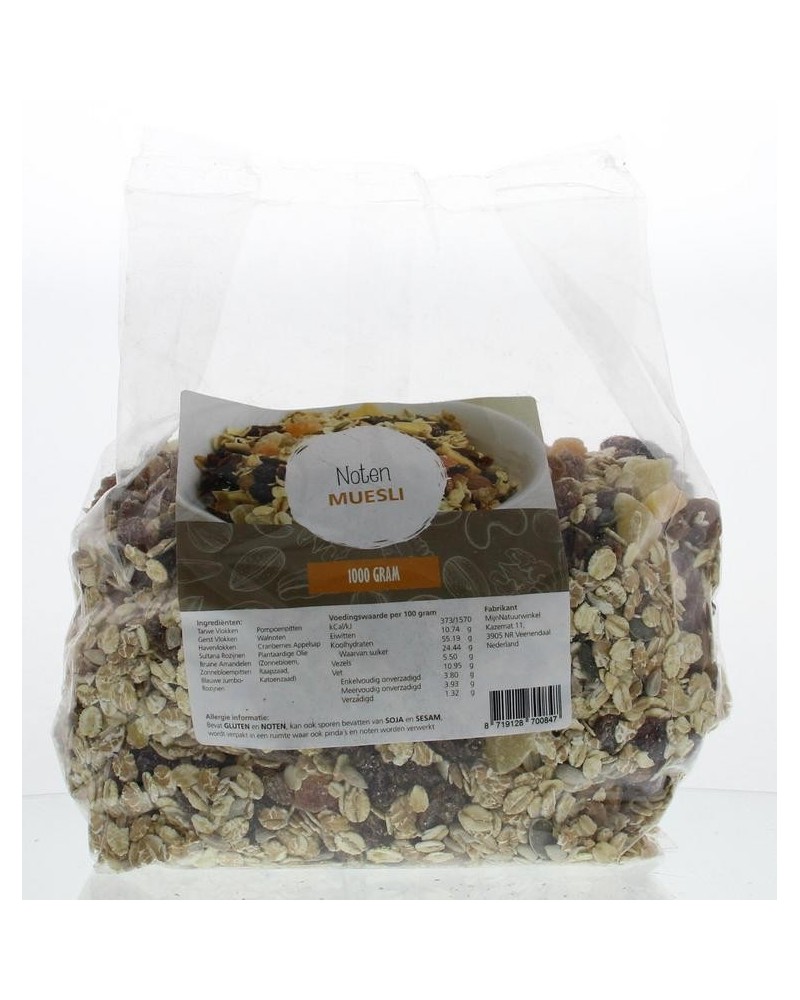 TARWEvlokken, GERSTvlokken, HAVERvlokken, Sultana rozijnen, Bruine AMANDELEN, Zonnebloempitten, Blauwe jumborozijnen, Pompoenpitten, WALNOTEN, Cranberries appelsap, Plantaardige olie (zonnebloem, raapzaad, katoenzaad)