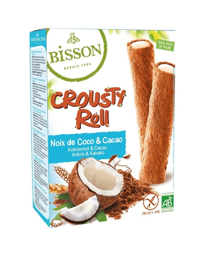 Bisson Crousty Roll met heerlijke kokos & cacaovulling. Verpakt per 2 stuks. Hierdoor blijven de rolletjes krokant en zijn ze ook makkelijk mee te nemen.