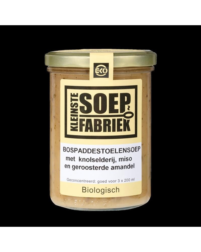 Soep zoals het bedoeld is: op ouderwetse manier met tijd, zorg en aandacht bereid. Deze bospaddenstoelensoep is lekker vol en romig, gemaakt met biologische paddenstoelen, knolselderij, geroosterde amandel en miso. Aanlengen met 200 ml (half potje) water.