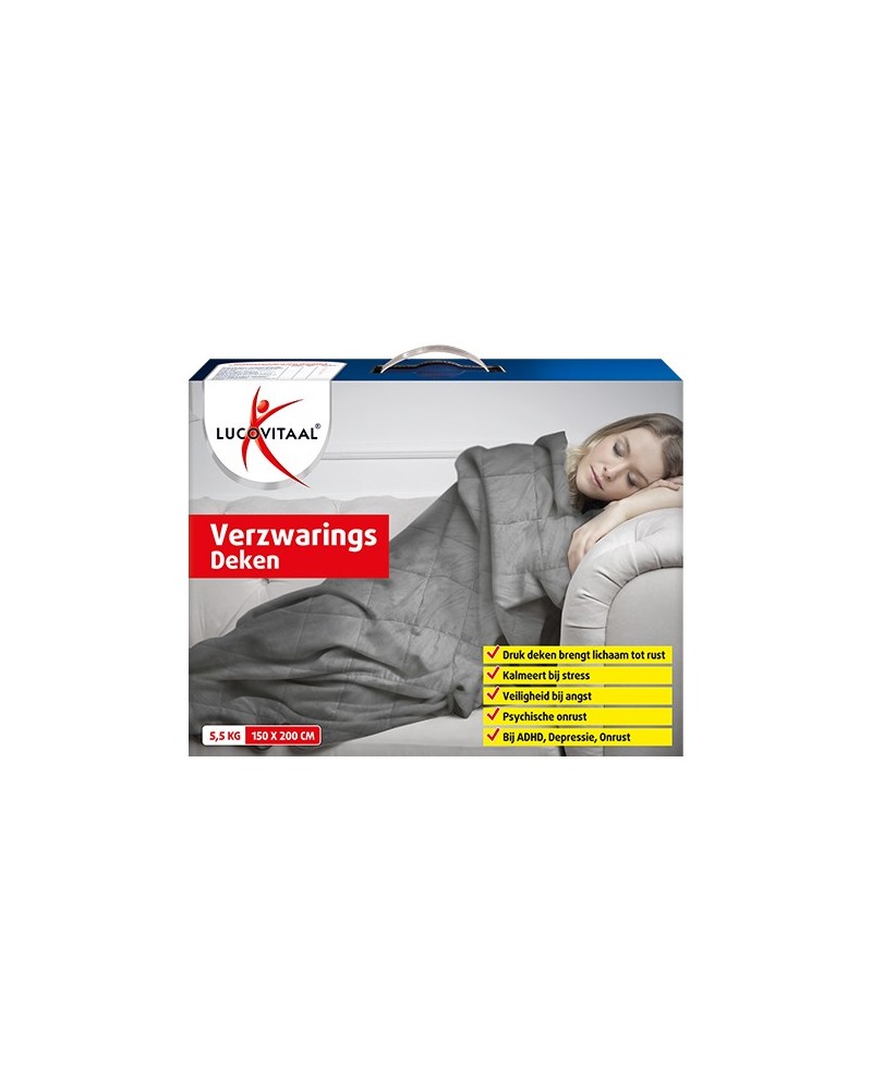 De Lucovitaal Verzwaringsdeken helpt o.a. om hyperactieve personen te helpen ontspannen en te zorgen voor een betere nachtrust. De deken geeft geborgenheid, een veilig gevoel (bij angst) en kalmeert bij onrustigheid doordat het zich aanpast aan het lichaam. Ook geschikt bij ADHD, spasmen, ernstige gedragsproblemen en ontspanningsproblemen zoals bij Huntington en Korsakov. Maar ook bij pijn, depressie of dementie kan de Verzwaringsdeken gebruikt worden.