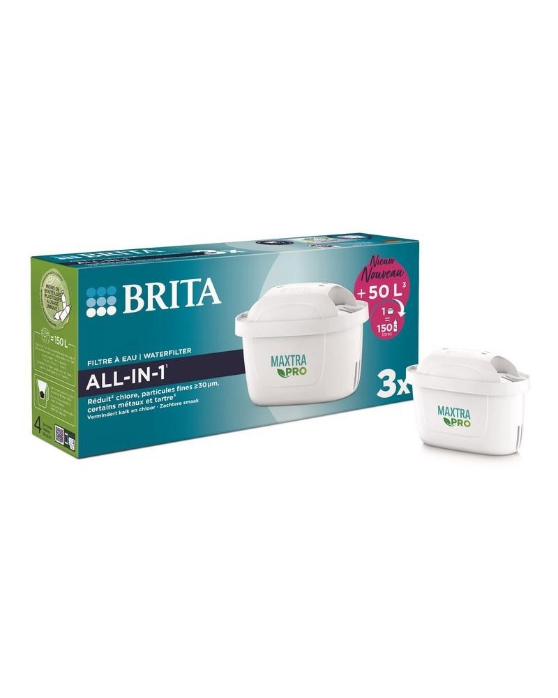 De BRITA MAXTRA PRO PURE PERFORMANCE waterfilters filteren dankzij de innovatieve 4-staps filtratie op basis van natuurlijke actieve kool van kokosnootschalen & ionenwisselaarparels kalk, smaakverstorende stoffen, onzuiverheden van bepaalde herbiciden, pesticiden & medicijnen en metalen als lood en koper die via de leidingen in je huis in je drinkwater terecht kunnen komen. Vertrouw op het origineel: BRITA gefilterd kraanwater smaakt niet alleen bijzonder puur & fris, maar biedt ook betrouwbare bescherming tegen kalkaanslag van huishoudelijke apparaten. Het is een duurzaam alternatief voor flessenwater en heel gemakkelijk in gebruik. Ontdek het volle aroma: BRITA zorgt voor fris gefilterd water en geeft je ook beter smakende koude en warme dranken met een voller aroma. BRITA Maxtra Pro waterfilters verminderen ook effectief kalkaanslag en zorgen voor een langere levensduur van je waterkoker en koffiemachine. 1 Maxtra Pro Pure Performance filterpatroon is goed voor 4 weken of 150 liter gefilterd kraanwater. Door ze tijdig te vervangen geniet je altijd van heerlijk BRITA gefilterd water. Bevat 3 Maxtra Pro Pure Performance filterpatronen goed voor 3 maanden gefilterd water.