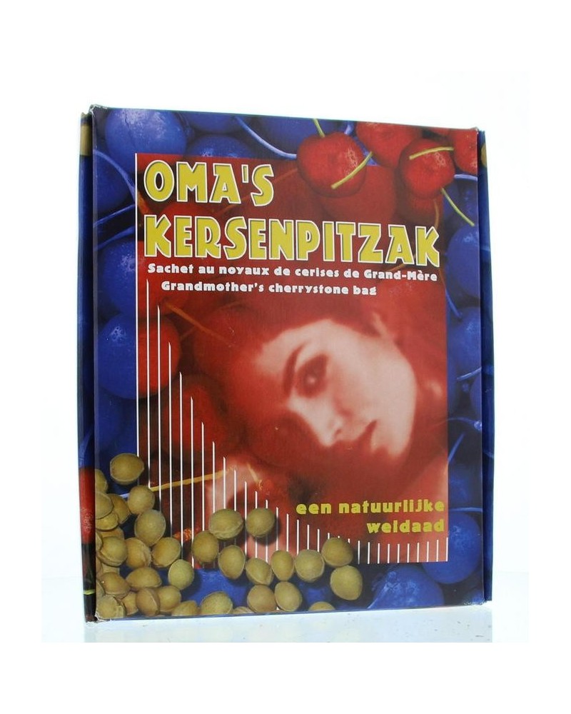 Oma's kersenpitzak is een warmtekussen gevuld met speciaal gedroogde en gereinigde kersenpitten, die de bijzondere eigenschap hebben warmte op te nemen en langzaam af te geven aan de omgeving.