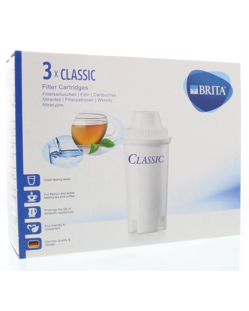 Het BRITA Classic filterpatroon filtert smaak- en geurverstorende stoffen, zoals kalk. Voor fris en heerlijk zacht BRITA gefilterd water, heldere thee en aromatische koffie. Vervang de filterpatroon iedere vier weken (gemiddeld 100 liter) voor het beste resultaat!